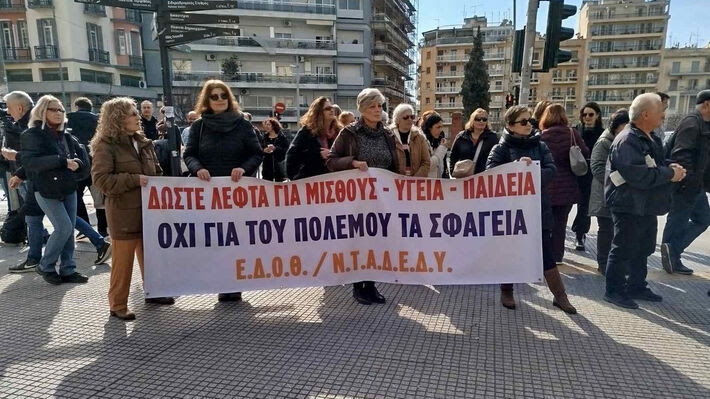 Στη Θεσσαλονίκη, τα σωματεία του Δημοσίου πραγματοποίησαν απεργιακή συγκέντρωση μπροστά στο Υπουργείο Μακεδονίας Θράκης, στο πλαίσιο της στάσης εργασίας από τις 12 μ. έως τη λήξη του ωραρίου, για τη διεκδίκηση επαναφοράς του 13ου και 14ου μισθού και πραγματικών αυξήσεων στους μισθούς.